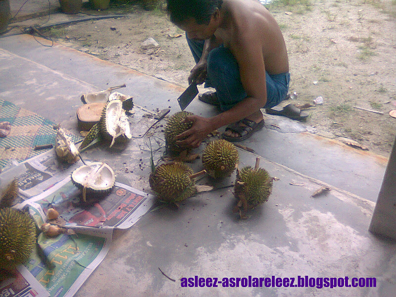 Dipendekkan cerita, pakcik yang jaga kebun Along tu suruh kitorang amik jer durian yang dalam kereta sorong dia tuh. Owh... thank youlah wahai pakcik! ;P